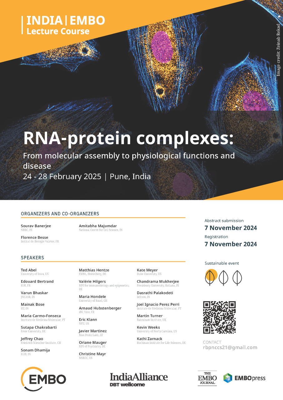 India EMBO Lecture Course RNA-protein complexes: from molecular assembly to physiological functions and disease