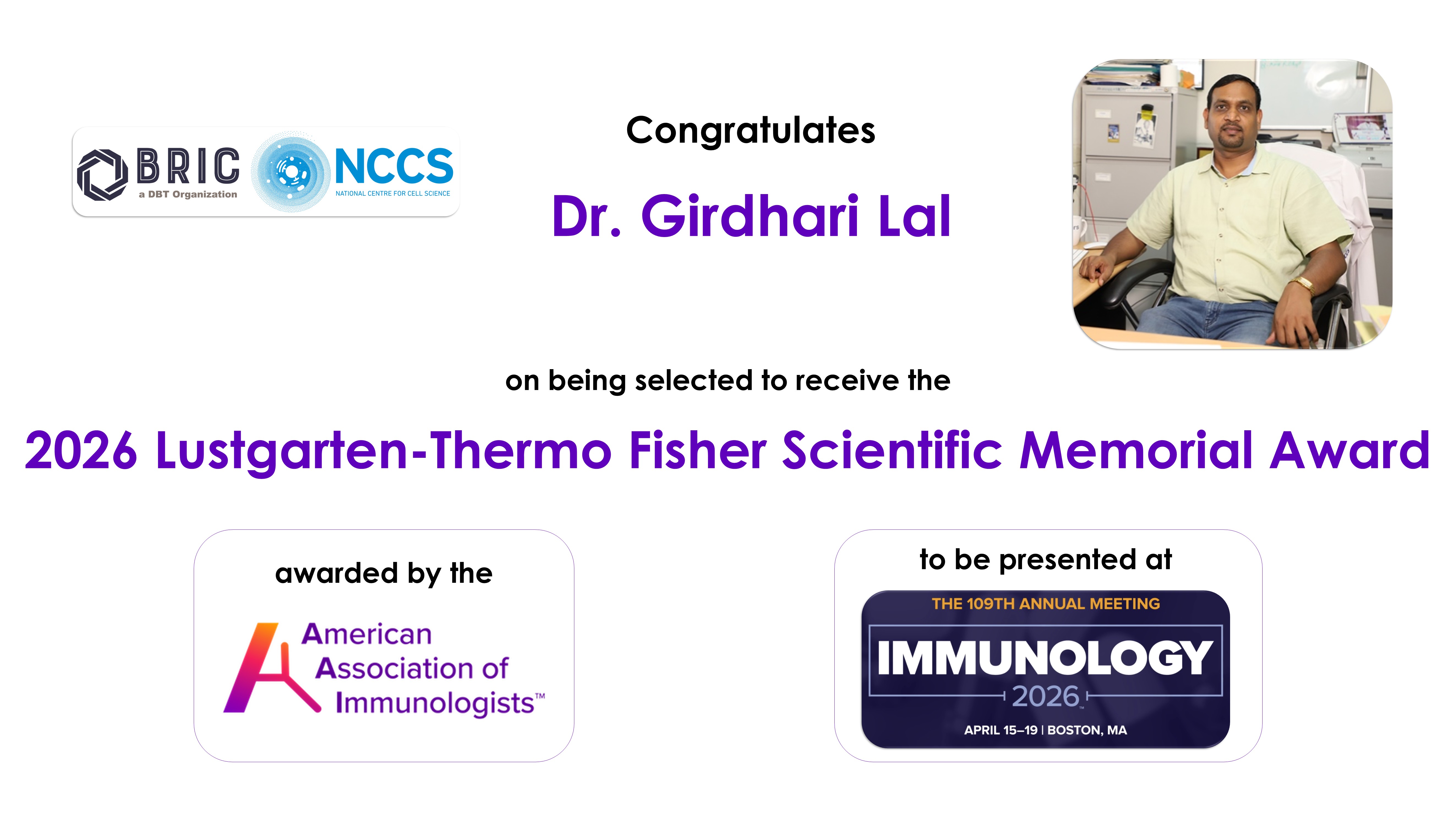 BRIC-NCCS Congratulates Dr. Girdhari Lal on being selected to receive the 2026 Lustgarten-Thermo Fisher Scientific Memorial Award