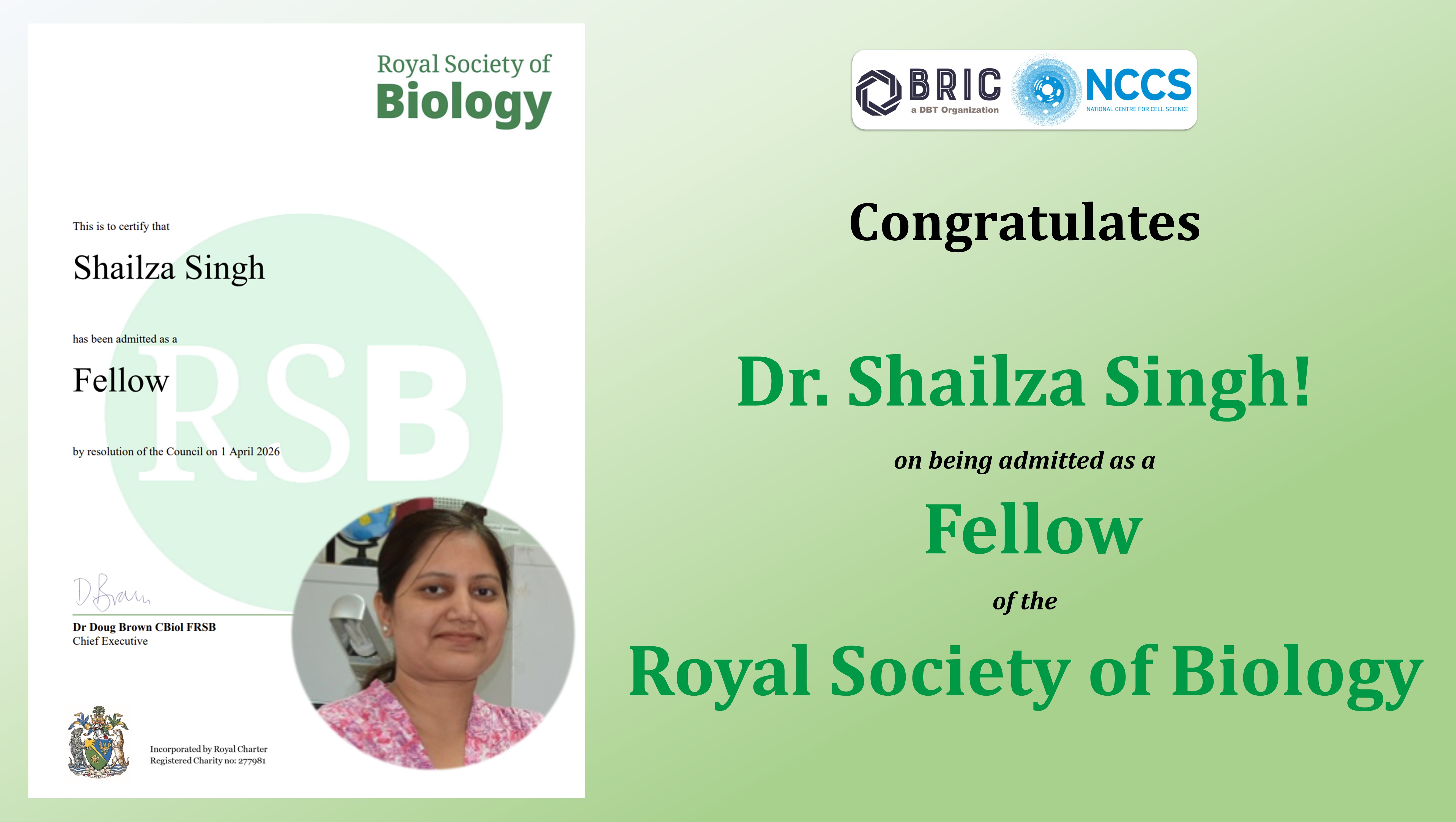 BRIC-NCCS congratulates Dr. Shailza Singh! on being admitted as a Fellow of the Royal Society of Biology !
