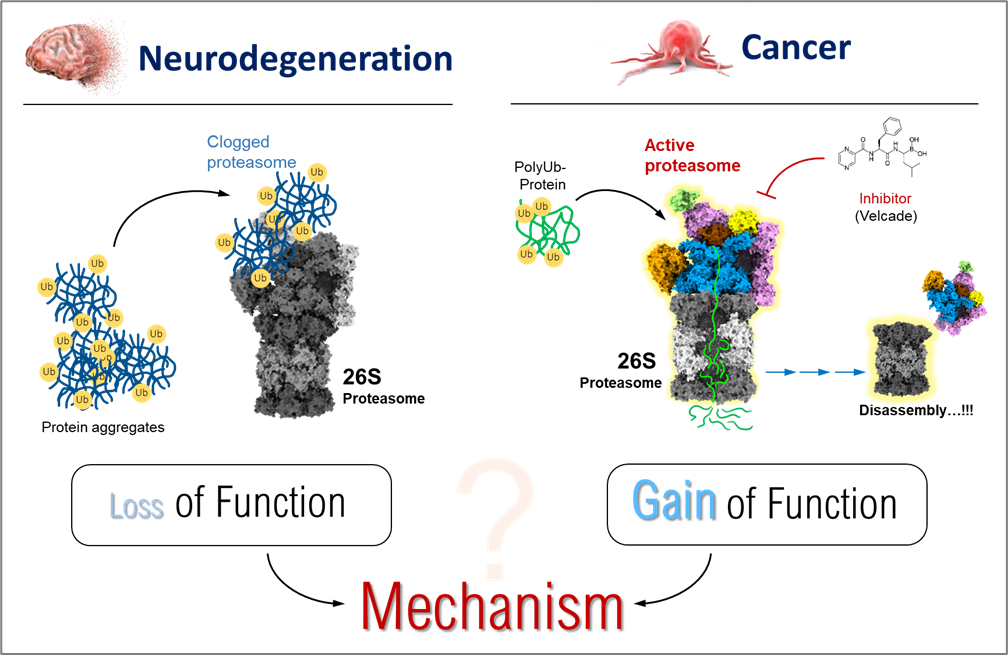 Ubiquitin Proteasome system (UPS) is the major protein degradation system in all eukaryotes. Proteasome is the catalytic megacomplex which degrades the damaged protein in a very regulated manner. However, in disorders like neurodegeneration, this degradation function is compromised. Interestingly, in the other hand proteasome degradation function is enhanced in disease like cancer…!! Hence, understanding these two opposite impairment mechanisms would offer a better insight of proteasome function under human pathology. We follow molecular cell biological approach to study those mechanisms in cellular disease models.