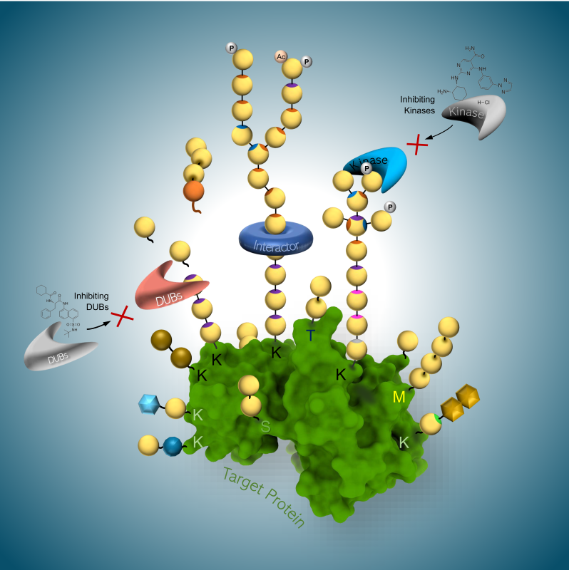 The ubiquitin landscape in eukaryotic cells is vast and highly complex, orchestrating most cellular signaling pathways. The ubiquitination status of a protein—including the number of ubiquitin attachments, the nature of polyubiquitin chains, their linkage types, and topology—plays a critical role in determining its cellular fate and function. Precise regulation of this landscape is achieved through a fine balance between ubiquitination and deubiquitination, mediated by the coordinated actions of more than 600 E3 ligases and over 100 deubiquitinating enzymes (DUBs). Our research aims to understand both the cumulative and individual contributions of E3 ligases and DUBs in maintaining healthy proteoforms, using proteomic, ubiquitinomic, and biochemical approaches.